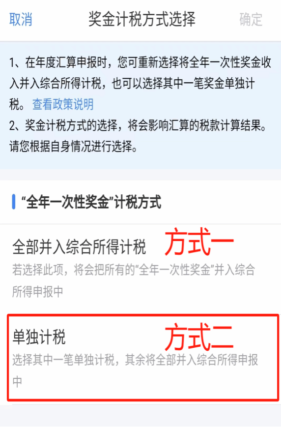 1.全年一次性奖金计:如存在一次性奖金,通常而言,专项附加扣除比较多且薪资水平偏低者选择合并计税划算,收入较高者选择单独计税更划算。建议分别尝试两种方式,您只需选择税负较低的那种保存即可。